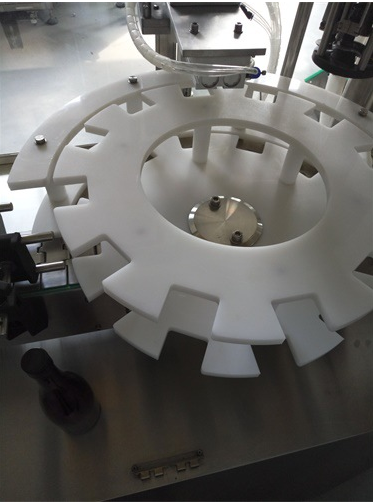 1,全自動液體灌裝壓塞鎖蓋一體機采用圓盤式理瓶,自動進瓶;