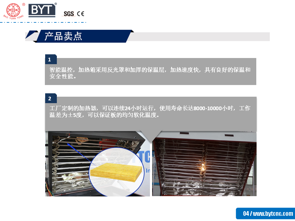 2.工廠定制的加熱器,可以連續(xù)24小時運行,使用壽命長達(dá)8000-10000小時,工作溫差為±5度,可以保證板的均勻軟化溫度。